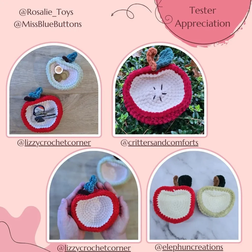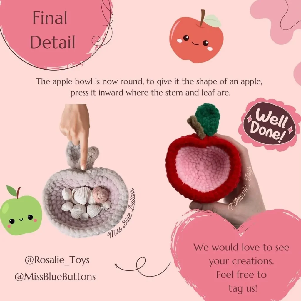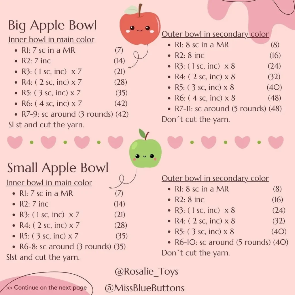 I have extracted the free crochet pattern for the “Apple Bowl” in two sizes (Big and Small) from the images you provided.