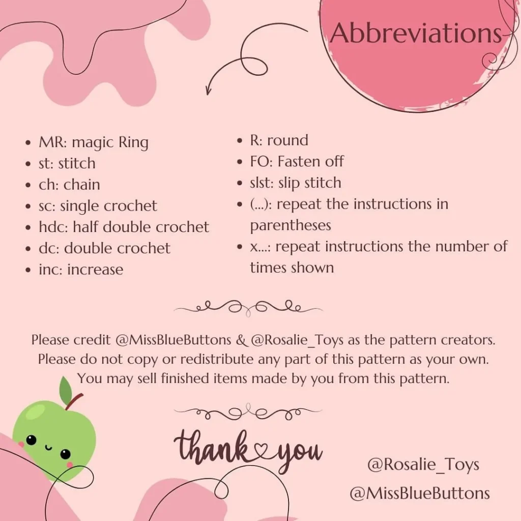 - The pattern is designed by @Rosalie_Toys and @MissBlueButtons. Please credit both designers.