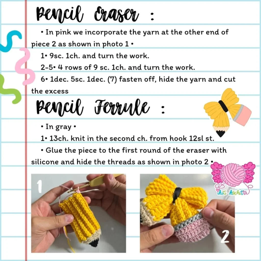 Free Crochet Pattern for Cute Pencil Bow Design